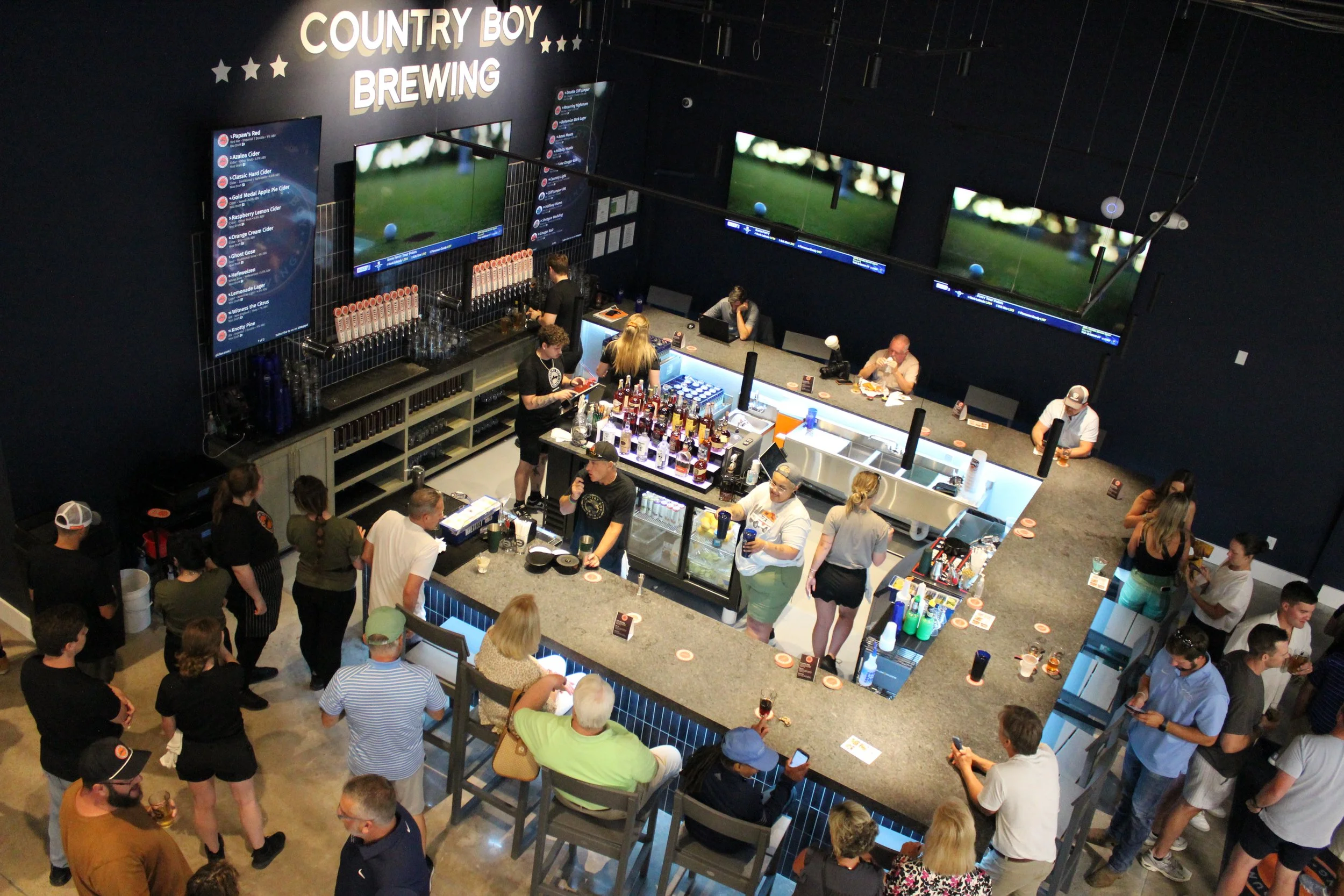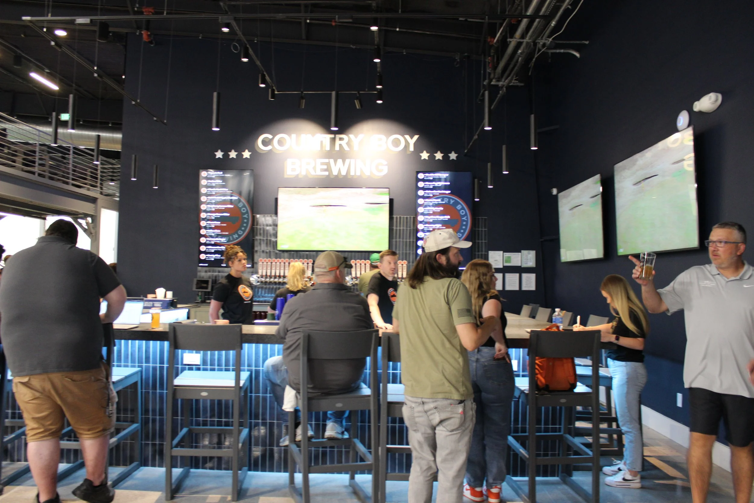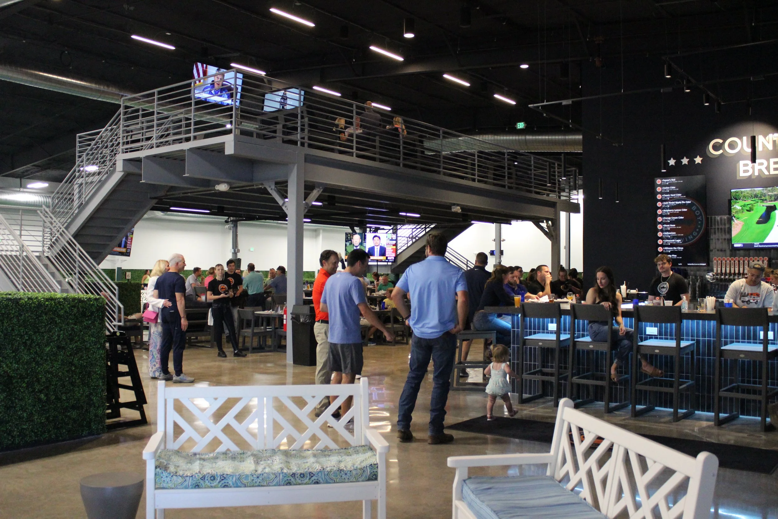 Inside, you’ll find a full Country Boy Brewing Company bar pouring their local favorites, a food menu designed for sharing, and three state-of-the-art golf simulators for swing tune-ups, long-drive dares, and friendly wagers. Step outside and the vibe continues with a spacious patio and a playful putting green built for cocktails, sunshine, and bragging rights.